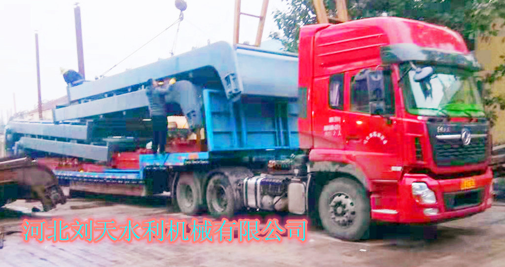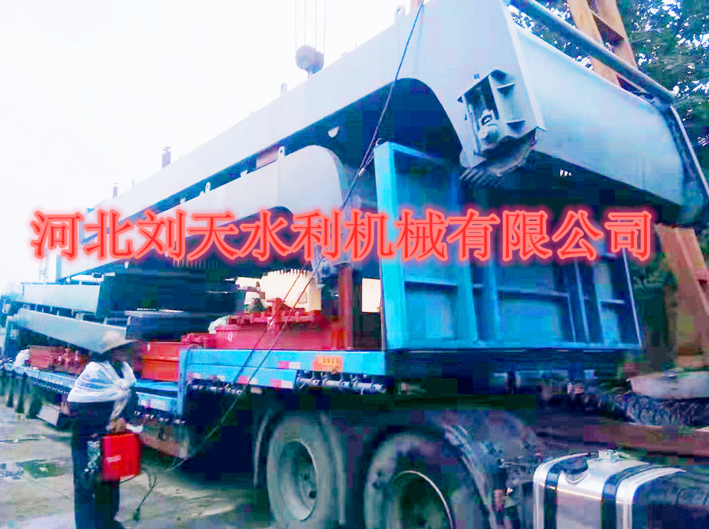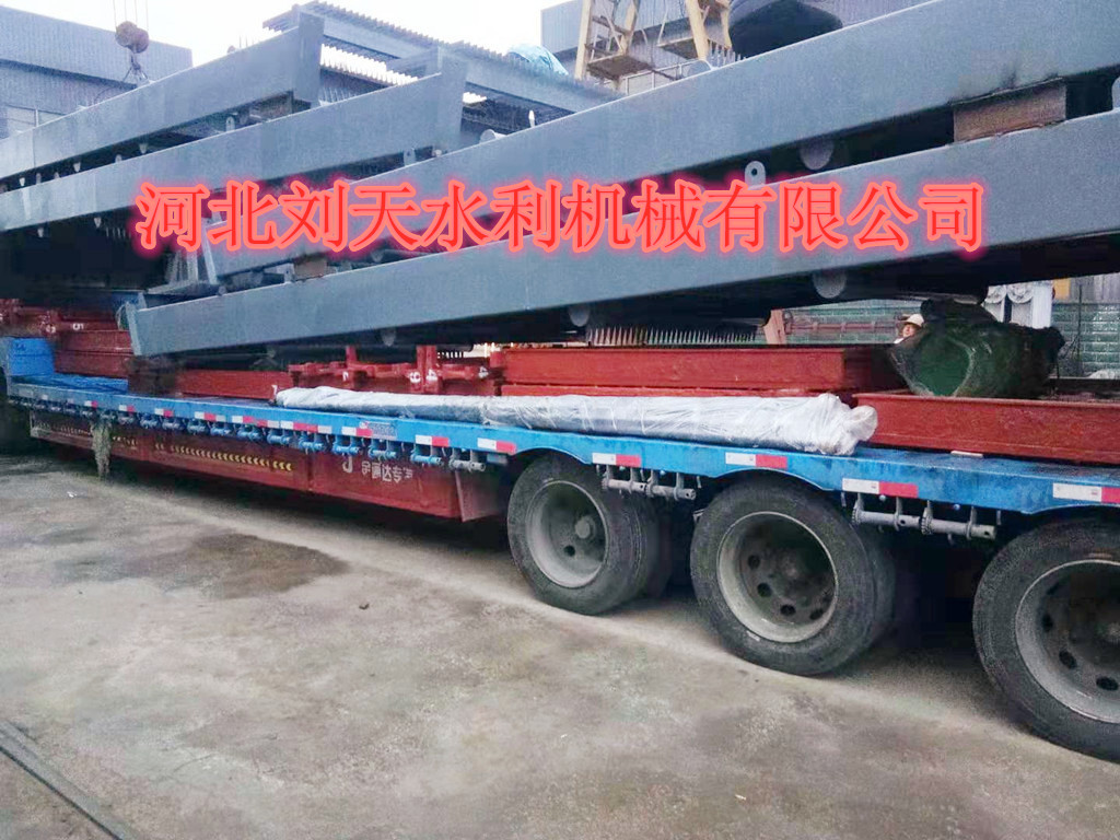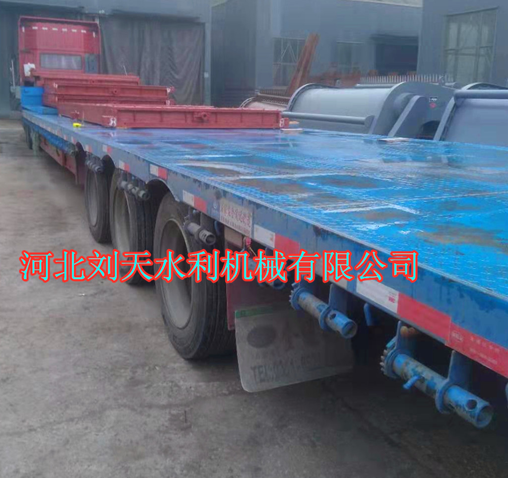 雙止水2*2米鑄鐵閘門(mén)、清污機(jī)冒雨裝車(chē)發(fā)往內(nèi)蒙古通遼